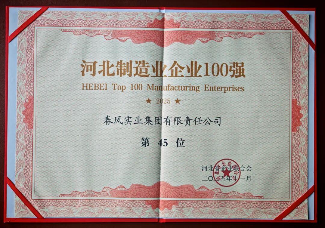 春風(fēng)實業(yè)集團榮獲“2025河北企業(yè)100強”“2025河北
